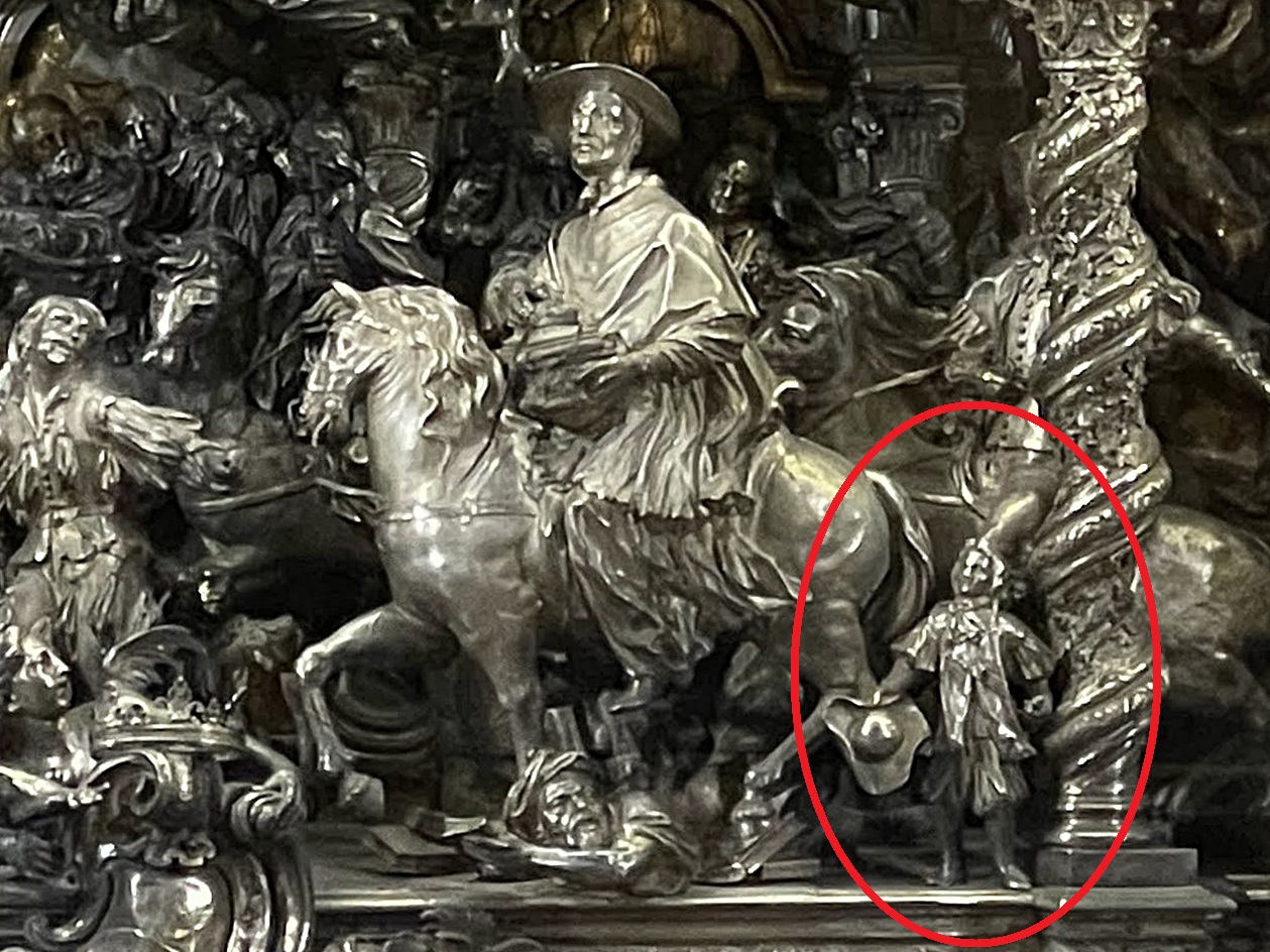 ג'אן דומניקו וינאצ’ה (Giovan Domenico Vinaccia), שעבד על היצירה במשך שלוש שנים, נפטר בשנת 1695, ימים ספורים לפני שזכה לראות את יצירתו ניצבת בקפלת האוצר (Cappella del Tesoro) של סן ג'נארו. עם זאת הפסל המוכשר דאג להותיר את חותמו, על חזית המזבח. הוא הדמות מאחורי זנב הסוס, המחזיקה את הכובע ביד וקדה לעבר הצופים. מעין נגיעה אישית של האמן המוכשר שביקש לציין את נוכחותו, אולי מתוך חשש ואולי במין תקווה, שלא להישכח.