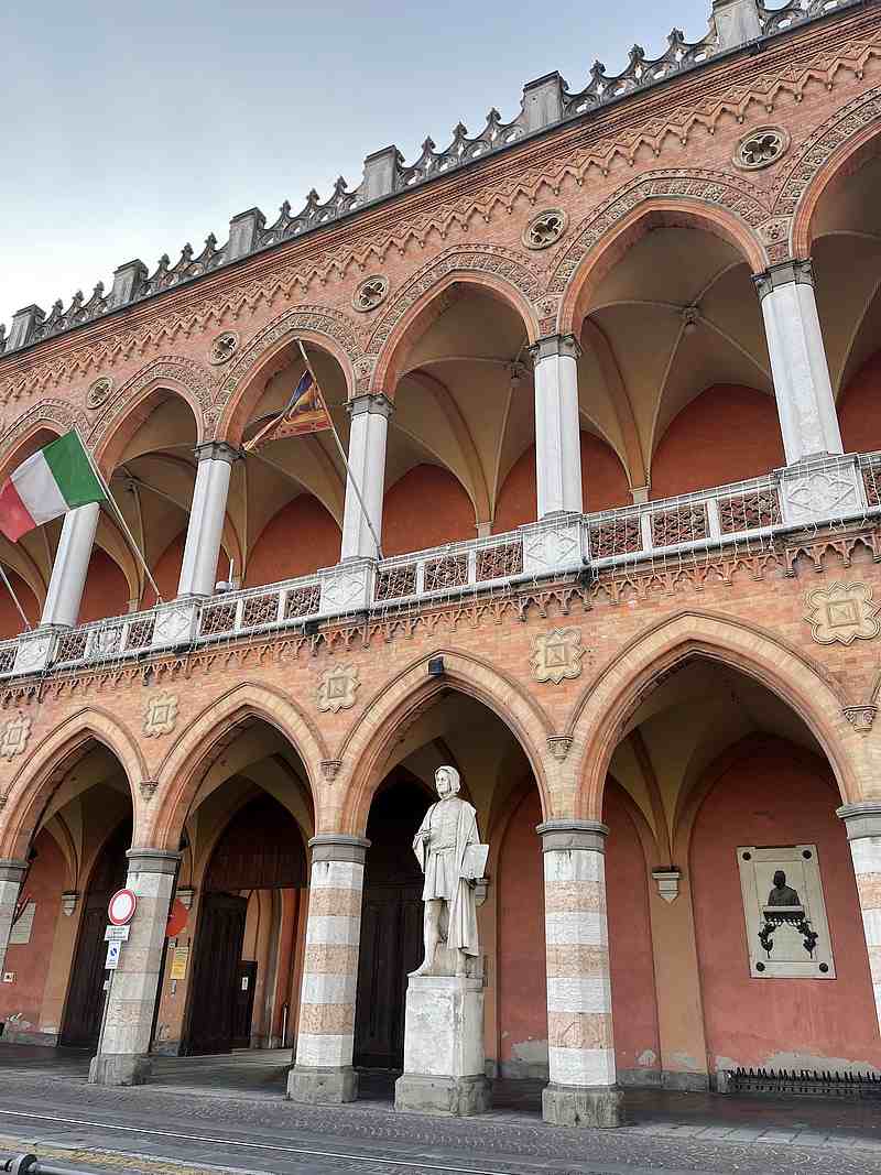 "בשולי התעלה הונחו פסליהם של גברים מפורסמים שנקשרו לעיר פדובה.